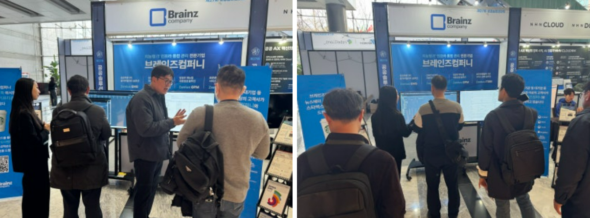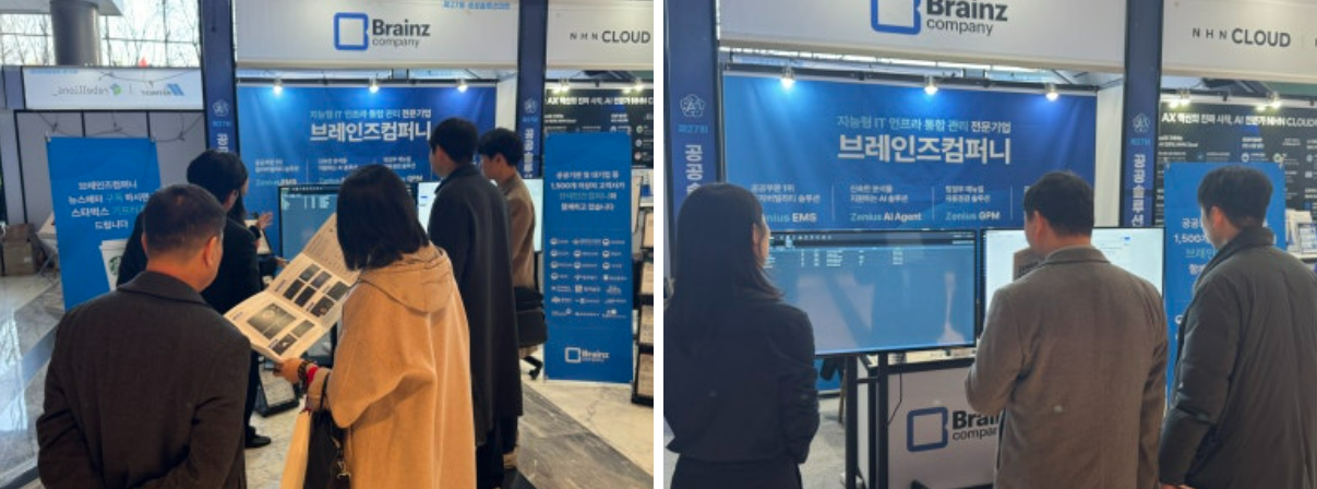 브레인즈컴퍼니는 이번 전시에 참가해 정부의 공공 디지털 행정 고도화 기조에 맞춰, 운영 안정성 확보와 표준화된 관리 체계 구축을 위한 실질적인 해법을 제시했습니다. AI Agent 기능이 탑재된 Zenius EMS를 필두로 Zenius GPM, ITSM 등 공공 IT 인프라의 전 영역을 포괄하는 지능형 솔루션들을 선보이며 많은 참관객의 관심을 받았습니다.