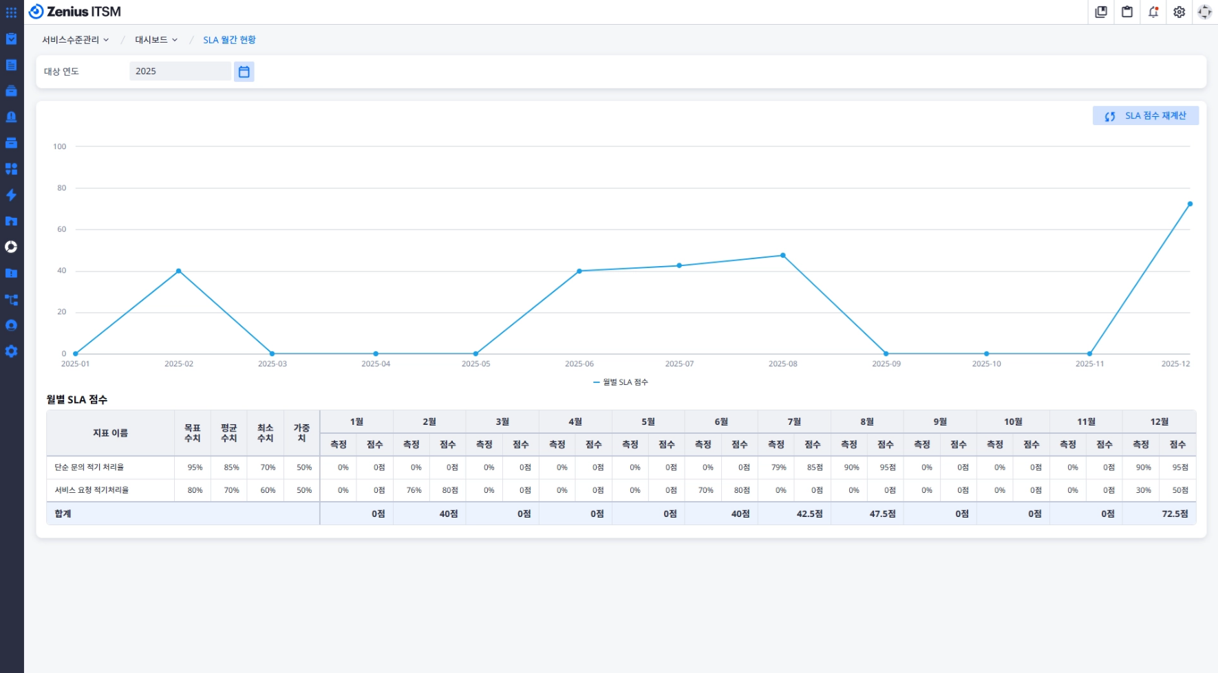 SLA는 서비스의 품질을 측정하는 핵심 지표지만, 많은 곳에서 엑셀을 이용한 수동 계산이나 사후 결과 확인에 그치는 경우가 많습니다. 진정한 의미의 ITSM은 서비스 품질을 실시간으로 감시하고 개선하는 데 목적이 있어야 합니다.