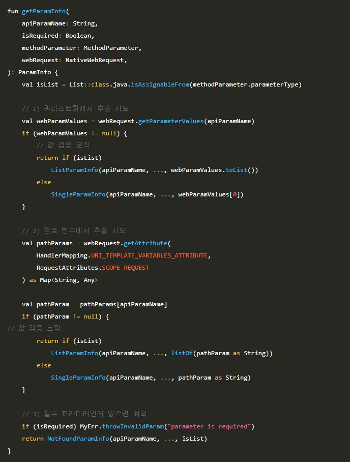 다수의 API에서 [URL로부터 값 추출 → 검증 → 도메인 객체 변환]의 패턴이 반복되는 프로젝트라면, HandlerMethodArgumentResolver를 적극적으로 도입하여 코드의 품질과 생산성을 높여보시는 것을 권장합니다.