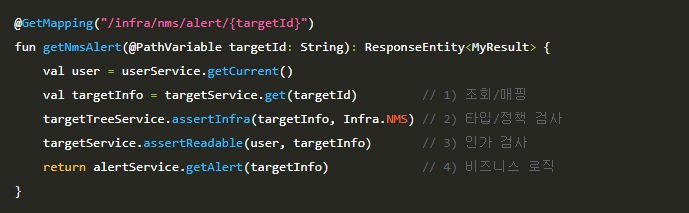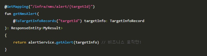 대규모 IT 인프라를 모니터링하는 도메인에서는 서버나 네트워크 장비와 같은 관리 대상을 통칭하여 타겟(Target)이라고 부릅니다. 이에 따라 대다수의 API는 리소스 식별을 위해 URL 경로(Path Variable)나 쿼리 스트링(Query Parameter)을 통해 targetId를 필수적으로 전달받는 구조를 가지고 있습니다.
