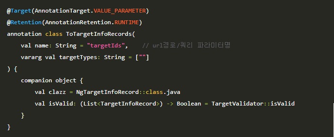 - VALUE_PARAMETER로 메서드 파라미터에서만 사용하도록 제한합니다.